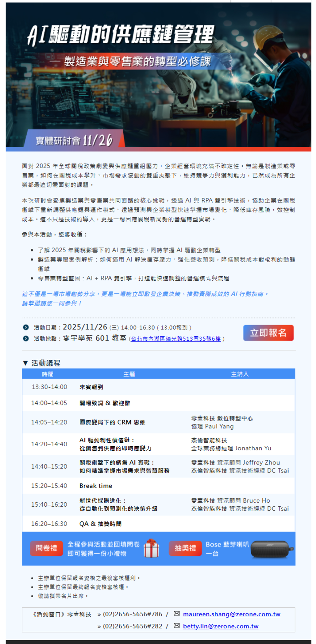 研討會: AI 驅動的供應鏈管理:製造業與零售業的轉型必修課