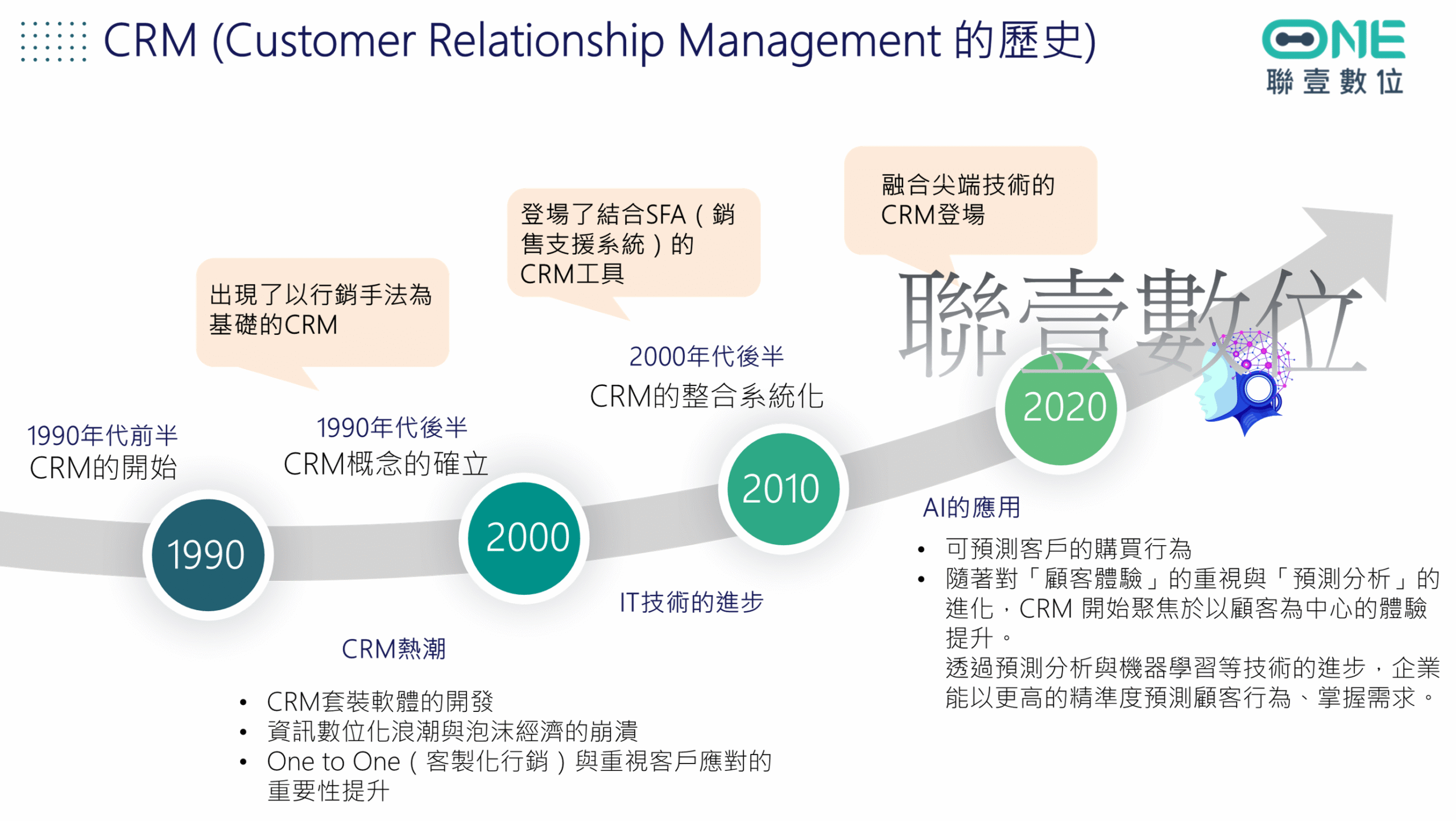 隨著1990年代後半期資訊科技的發展,CRM作為一個明確的商業概念逐漸確立。企業開始意識到系統化管理客戶資訊的重要性,這標誌著客戶關係管理正式進入數位時代。